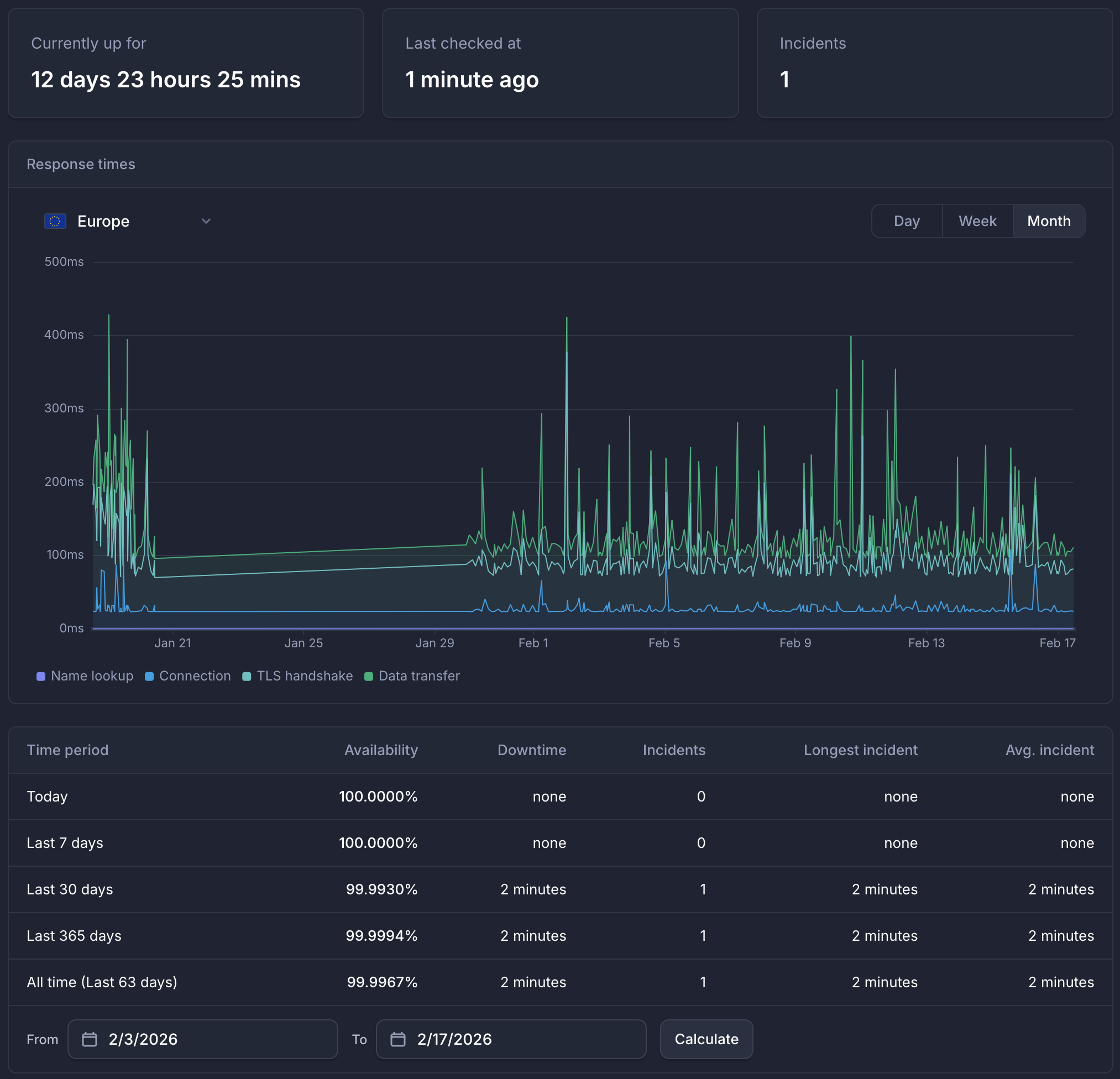 - Публічна статус сторінка на власному домені. Домен власний не обовʼязковий, вони дають домен третього рівня і самі безкоштовно. Може комусь здасться публічна статус сторінка небезпечною - це ж прямо публічний винос архітектури, критичних вузлів. Я вирішив що цей ризик допустимий, кому потрібен цей невловимий Джо.